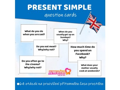 Používejte anglickou gramatiku aktivně v konverzaci! S PDF souborem obsahujícím 64 konverzačních otázek na procvičení přítomného času prostého to bude hračka.