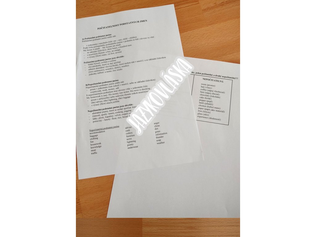 - 2x bludiště (1x bludiště po počitatelných podstatných jménech, 1x bludiště po nepočitatelných podst. jm.),