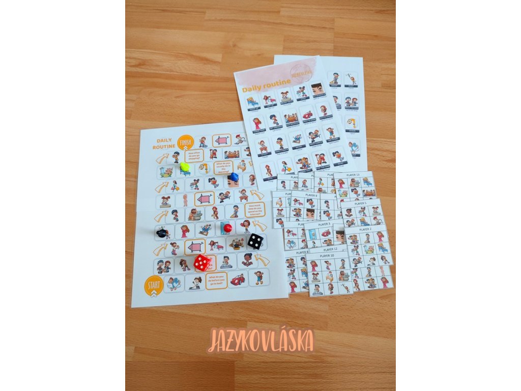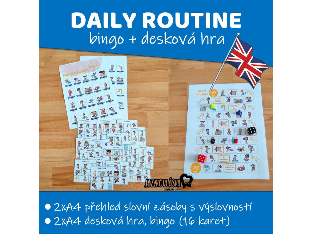 Chcete připravit žákům zábavnou hodinu v angličtině na téma denní režim? Zahrajte si s nimi bingo nebo deskovou hru. Jako pomoc bude žákům sloužit obrázkový slovníček.