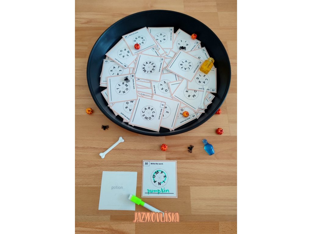 PDF soubor, který po koupi obdržíte, vytisknete, zalaminujete, rozstříháte. Žáci si berou kartičky, mazacím fixem najdou a zapíší slovo a zkontrolují na zadní straně. Vhodné pro samostanou práci.