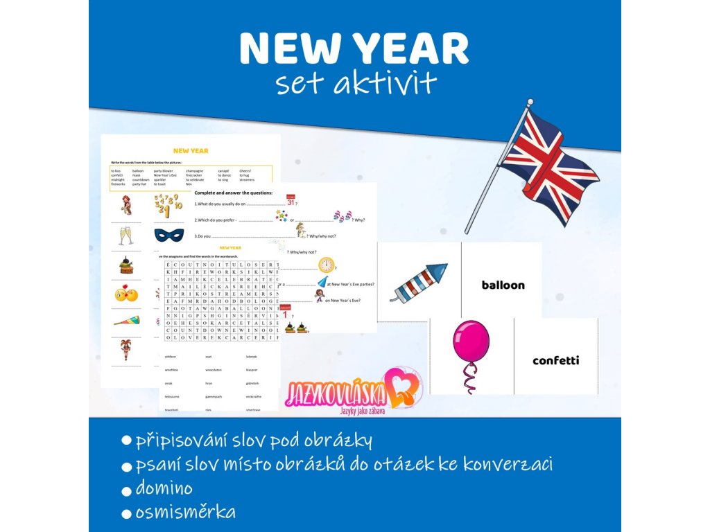 PDF soubor New Year set aktivit obsahuje 10 stran, na kterých najdete: